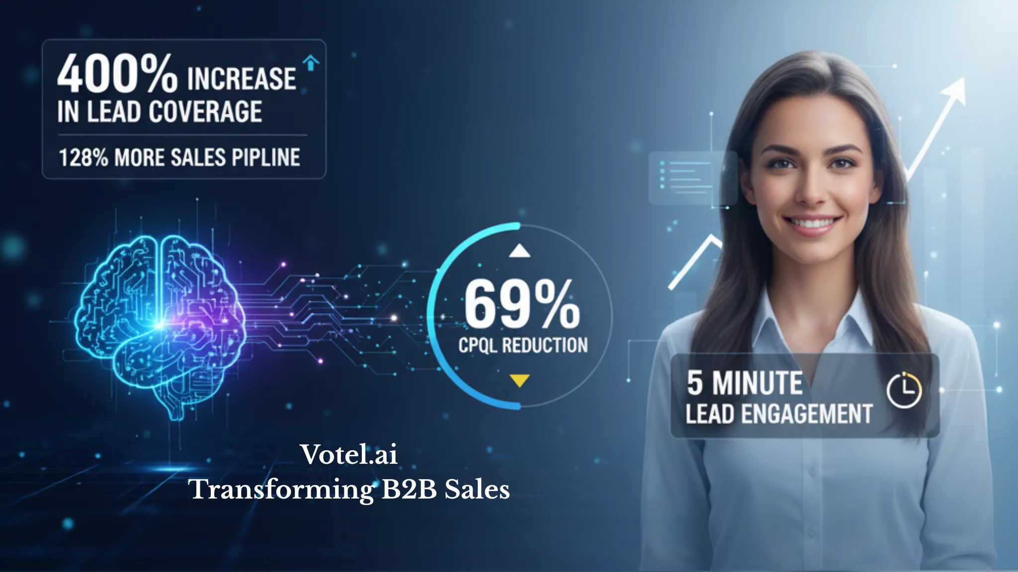 - The Votel AI successfully converts 8% of the total raw leads into Sales Qualified Leads (SQLs) and automatically books a demo directly onto the human AE's calendar.